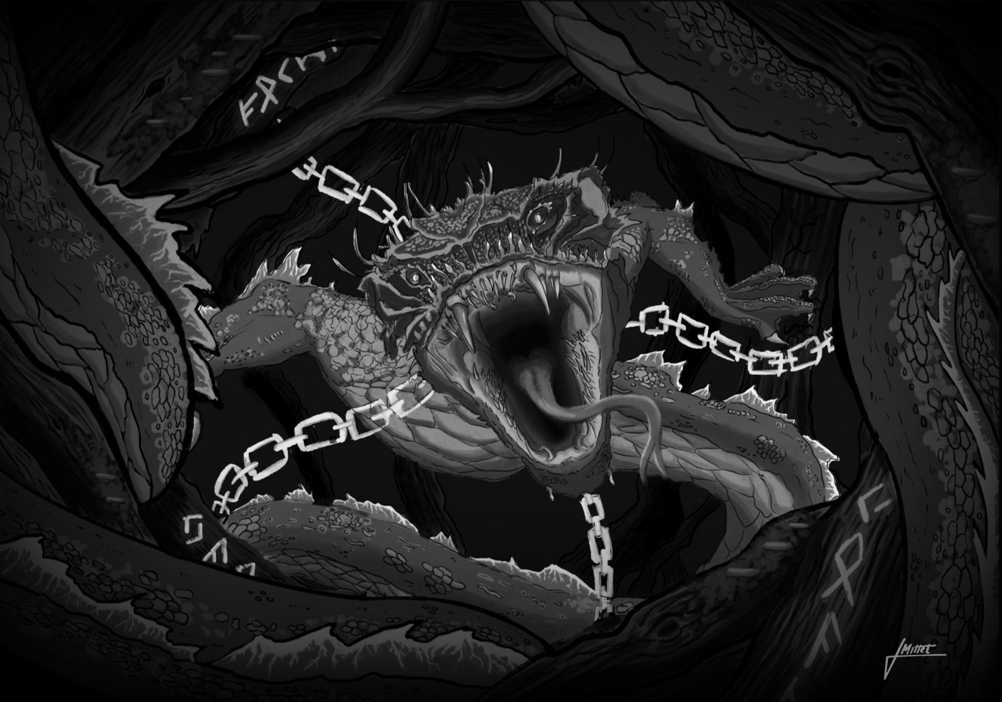 C’est là qu’il ronge les racines de l’Arbre cosmique, menaçant ainsi l’équilibre du cosmos nordique. Selon la légende, Nidhogg se nourrit des âmes des criminels et des traîtres, perpétuant le cycle de la mort et de la renaissance.