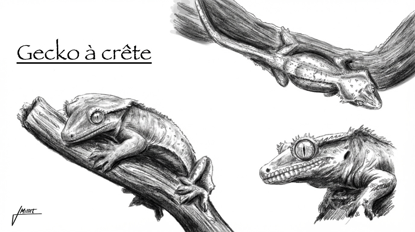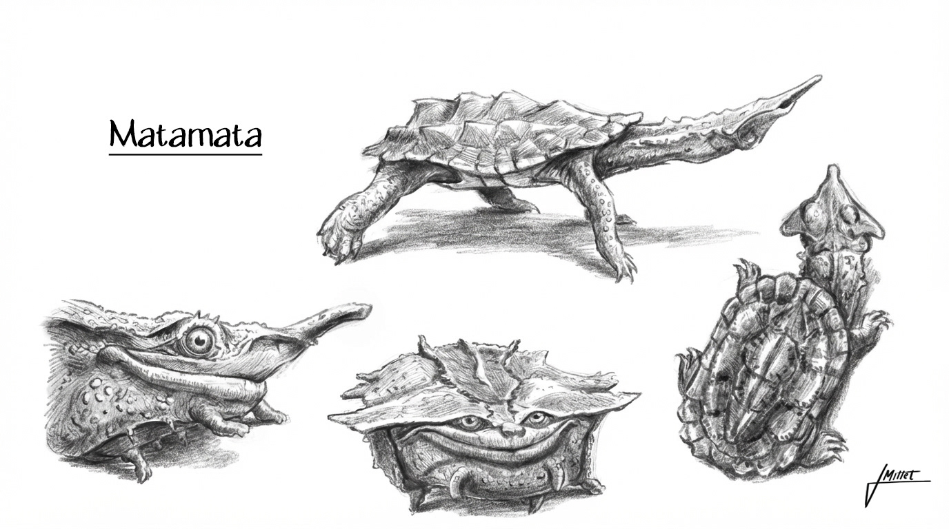 Grand passionné de reptiles, j’ai décidé de fusionner une tortue matamata avec un gecko à crête. J’ai ainsi conservé la tête caractéristique de la tortue et intégré le corps élancé du lézard.