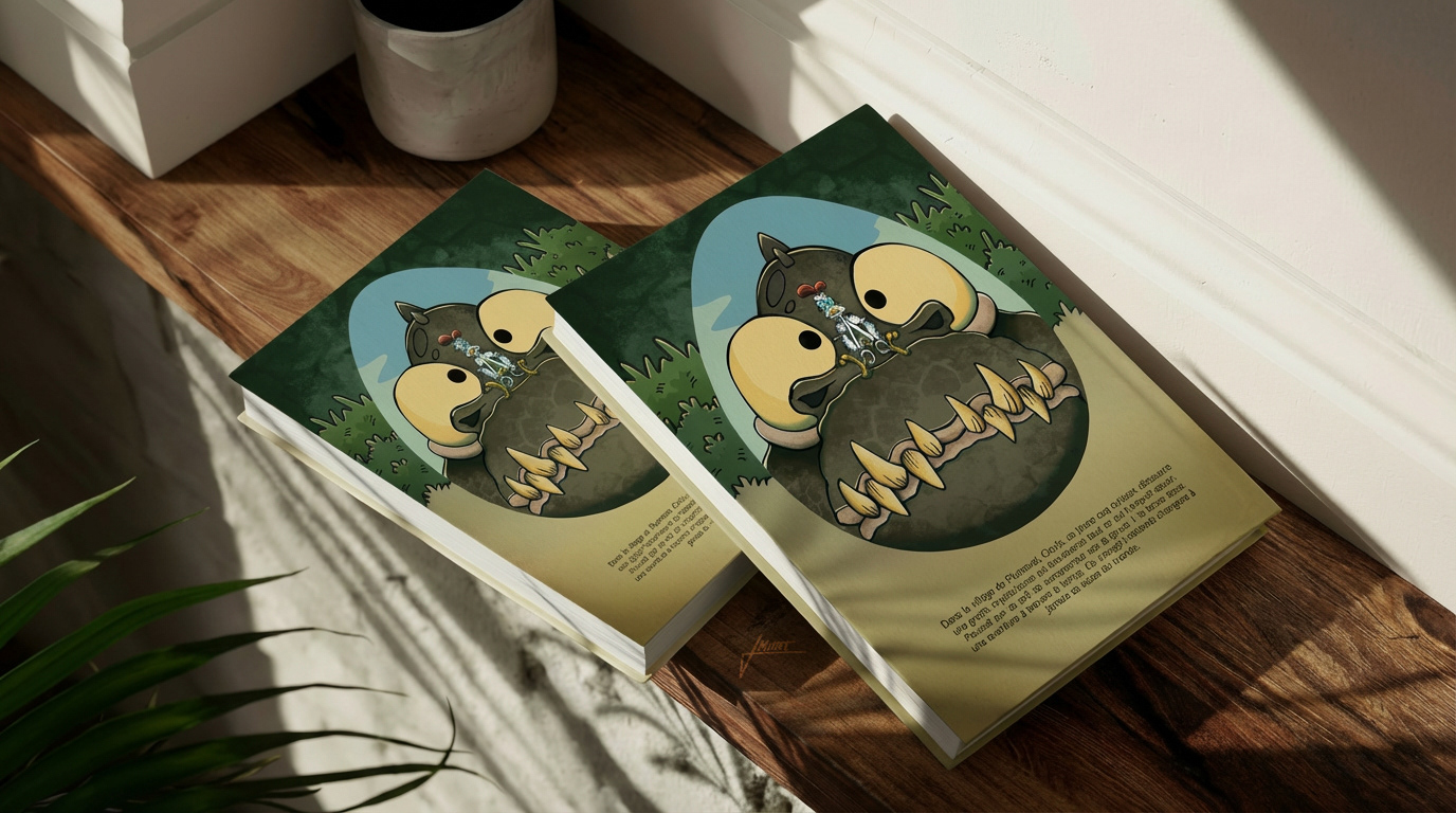 Mockup de la BD présentant la couverture et la quatrième de couverture.