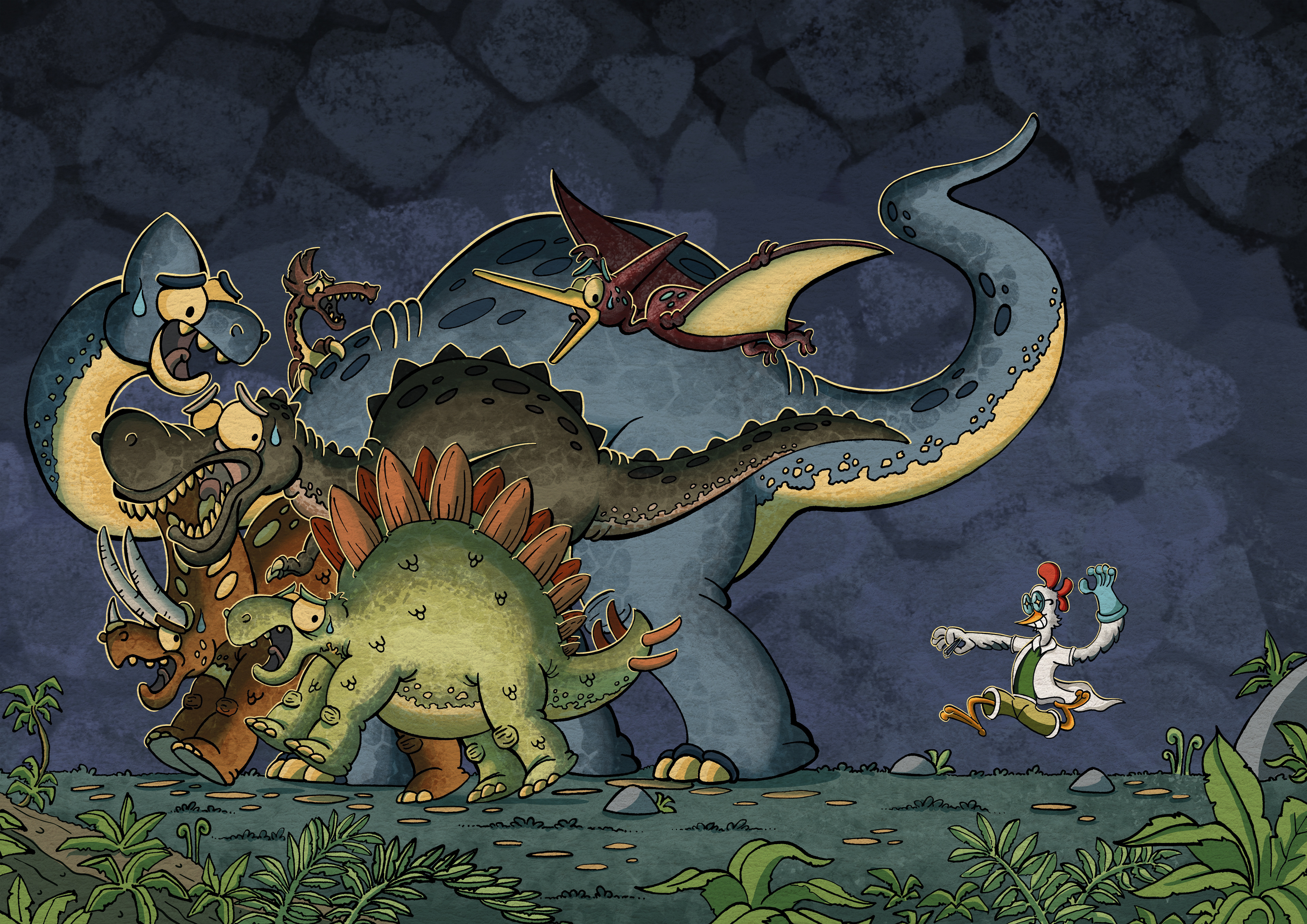 Clovis, un jeune coq ingénieux passionné par les mystères du passé, met au point une machine à remonter le temps … et se retrouve projeté directement au milieu des créatures les plus incroyables ayant foulé la Terre : les dinosaures !