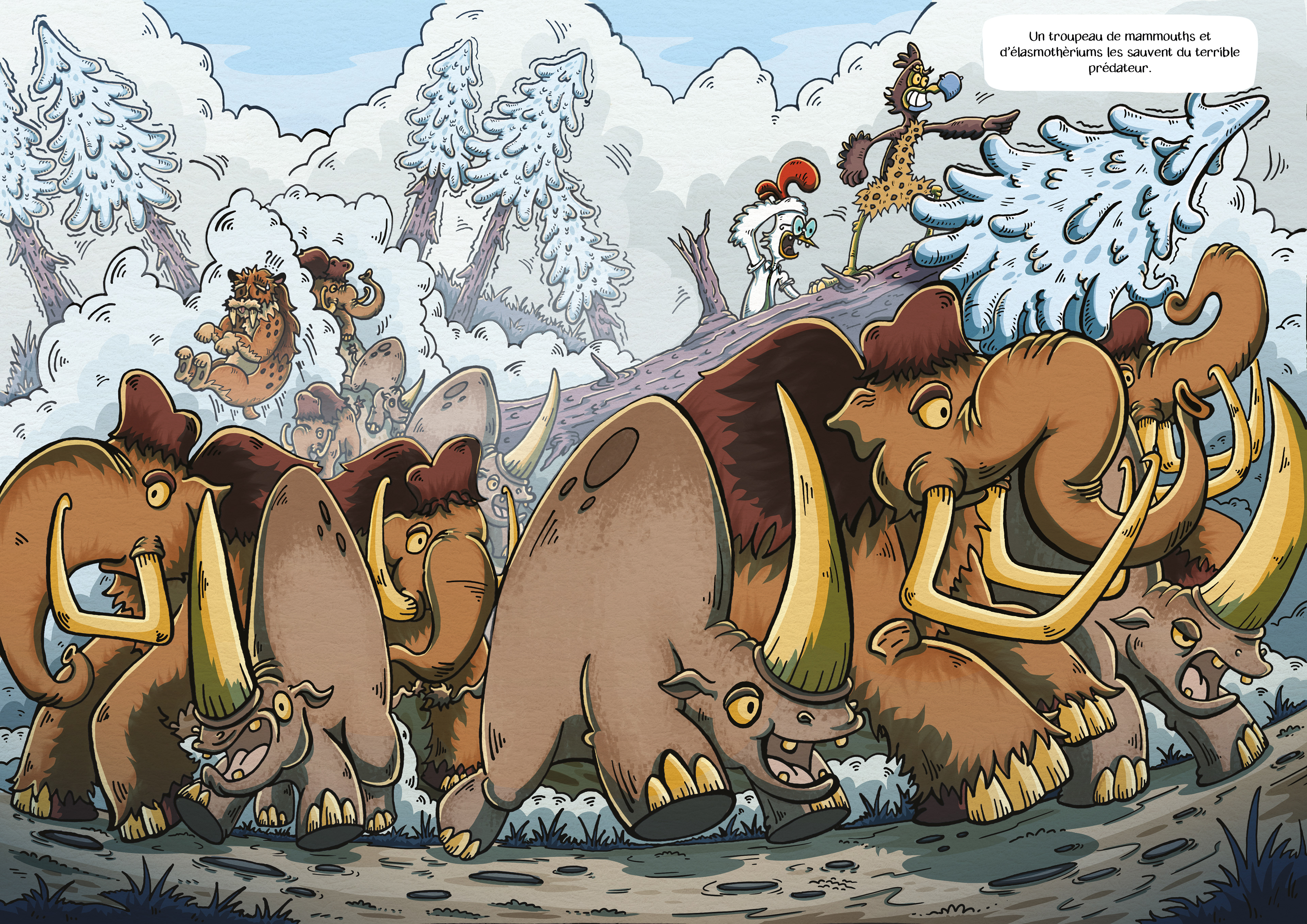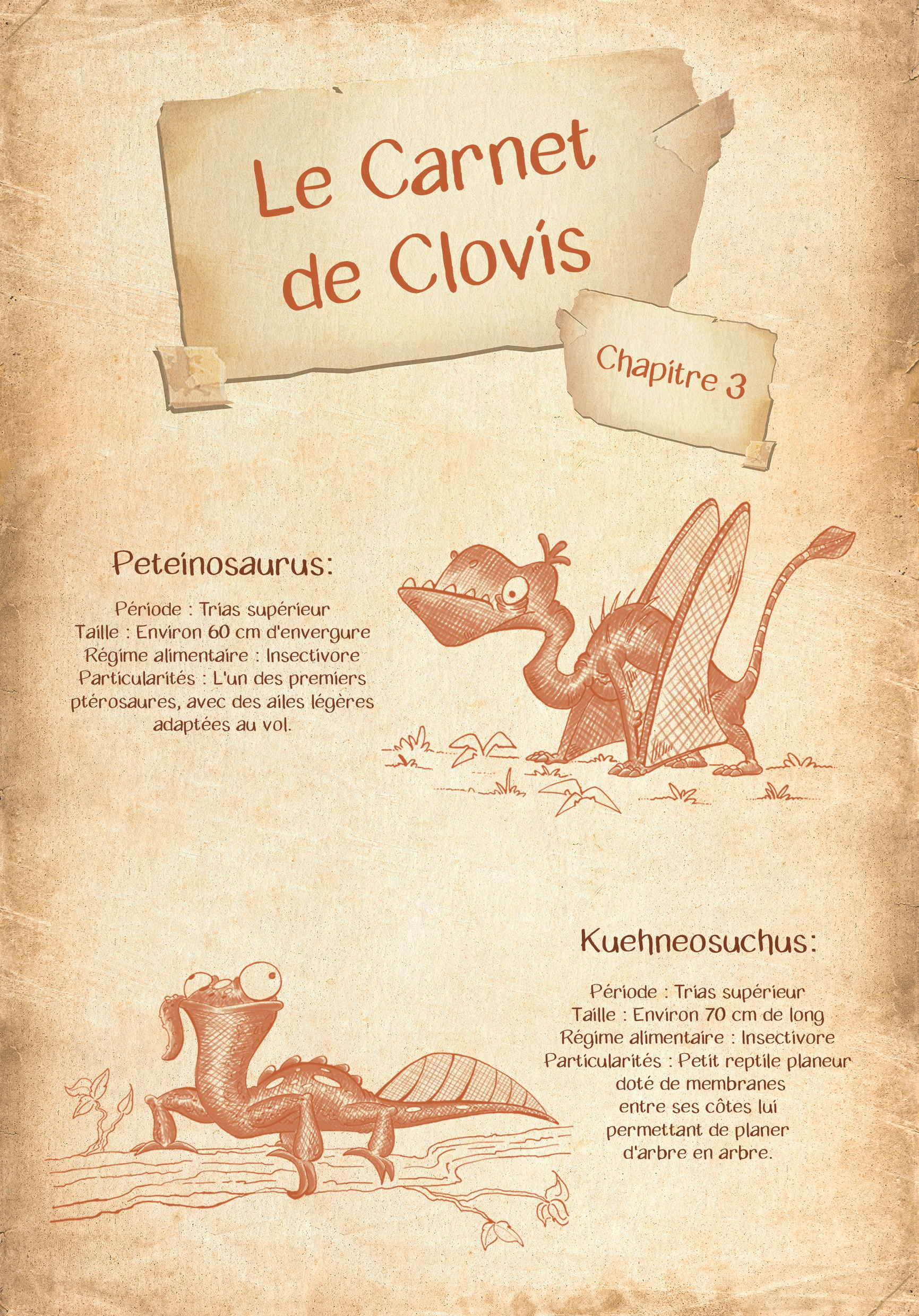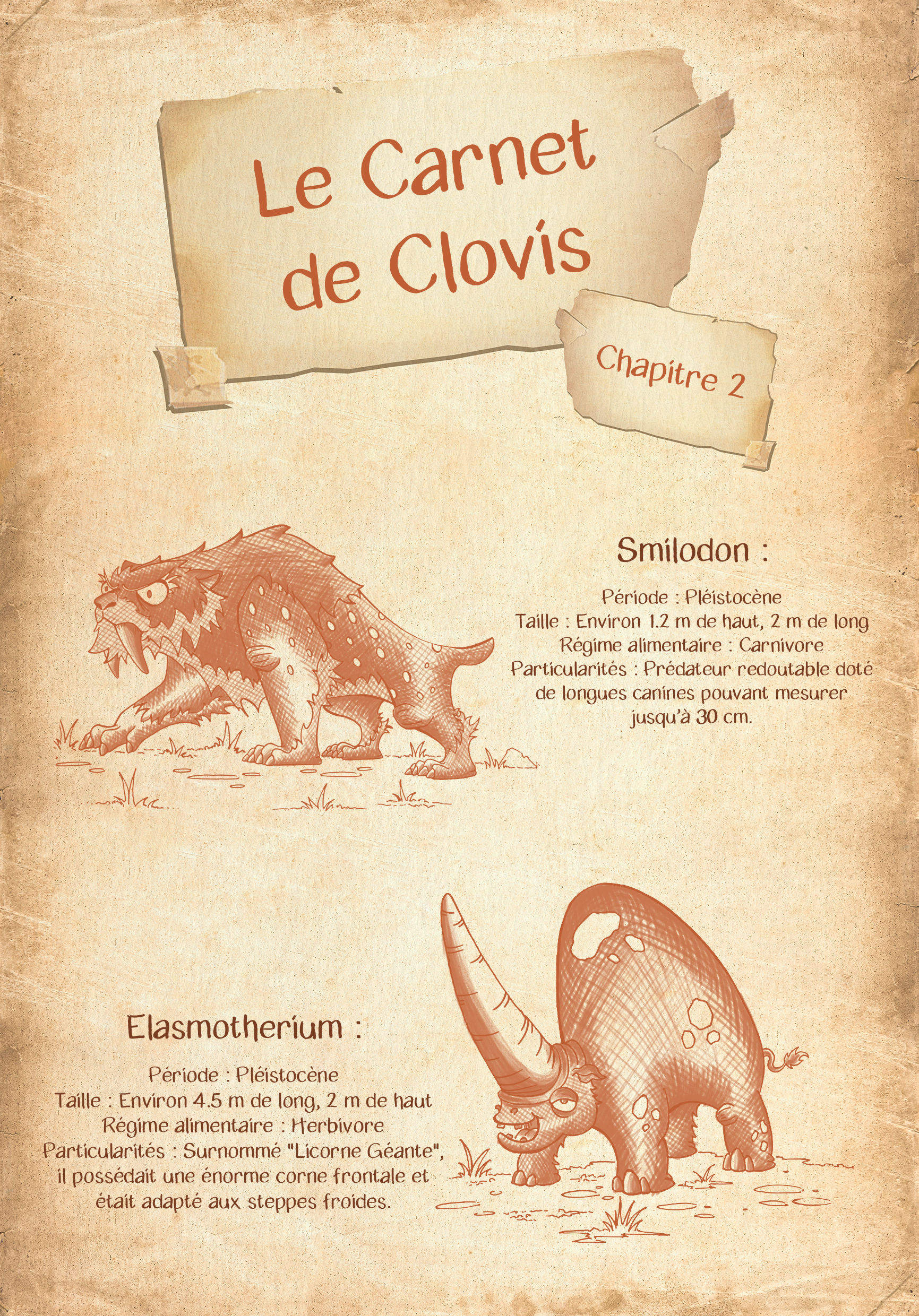 Entre les plaines du Pléistocène, les premiers pas des dinosaures du Trias jusqu’au Crétacé, Clovis devra faire preuve de malice, de courage… et d’un humour à toute épreuve pour survivre et mener à bien sa quête.