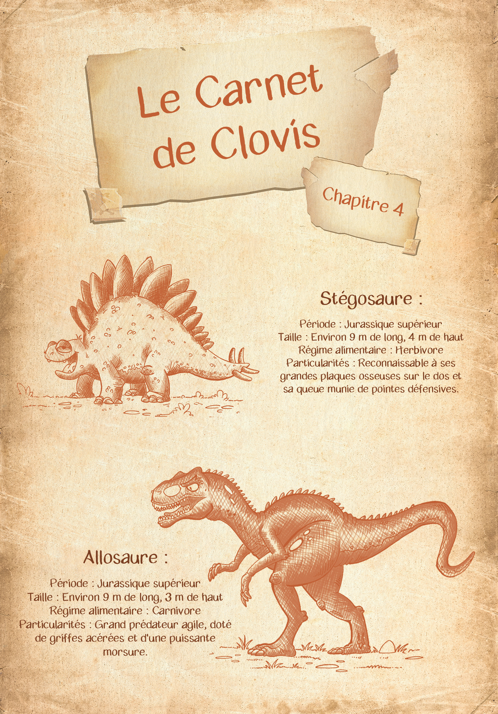 On y retrouve un petit croquis de l’espèce découverte par Clovis, ainsi que des informations sur son régime alimentaire, sa période de vie, sa taille et une particularité qui la rend unique !